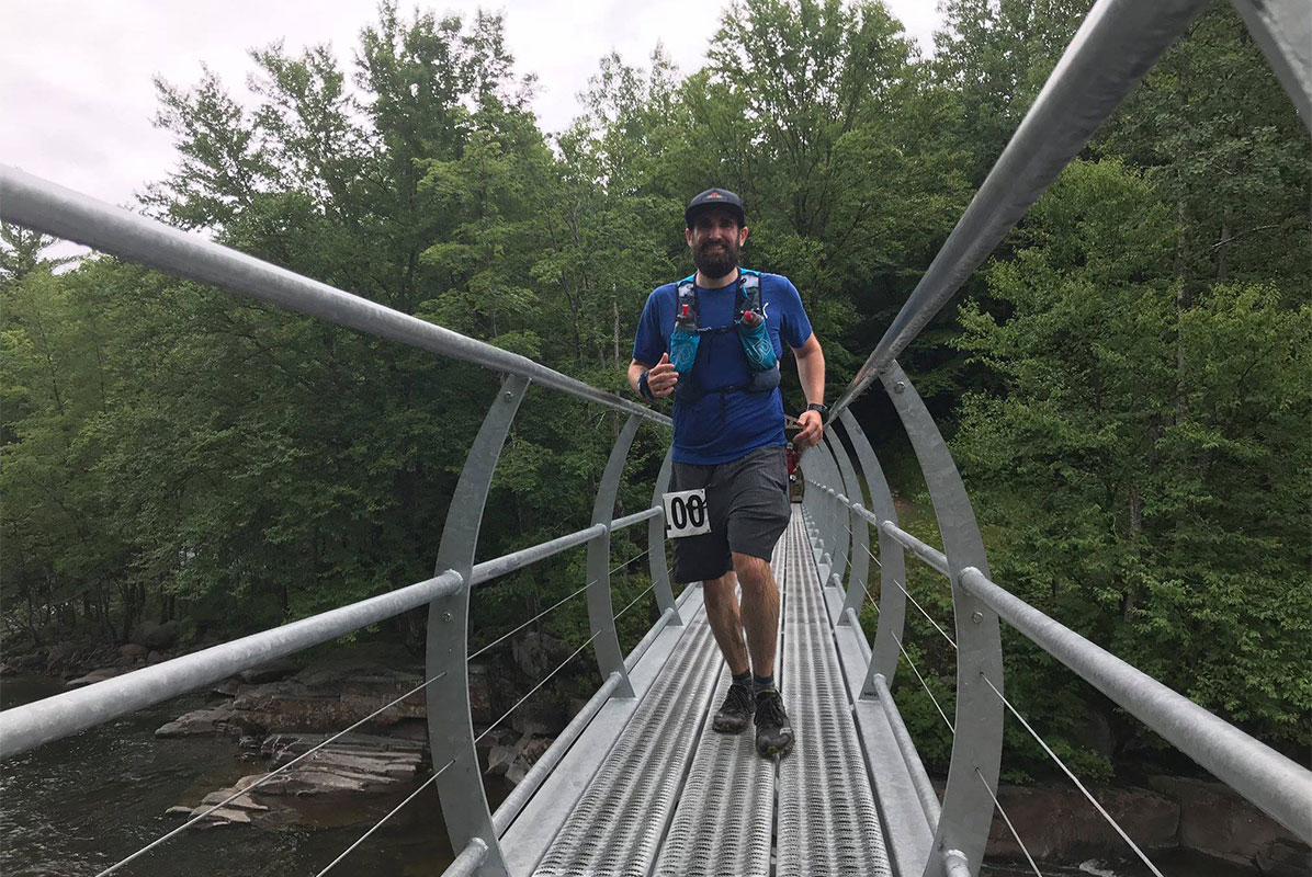 C’est en recherchant des trails au Québec en prévision de mon voyage que j’ai fait la connaissance d’Olivier le Méner. Sa façon de communiquer sur Facebook et un ton sympa sans se prendre la tête m’ont immédiatement séduit. Je me suis abonné à sa page pour suivre son aventure folle, l’organisation d’un trail d’une ampleur colossal : 5 circuits dont l’un d’une distance de 57 km. Étant moi-même organisateur de trail, le défi me semblait fou pour une première édition à seulement quelques mois du jour de la course !
